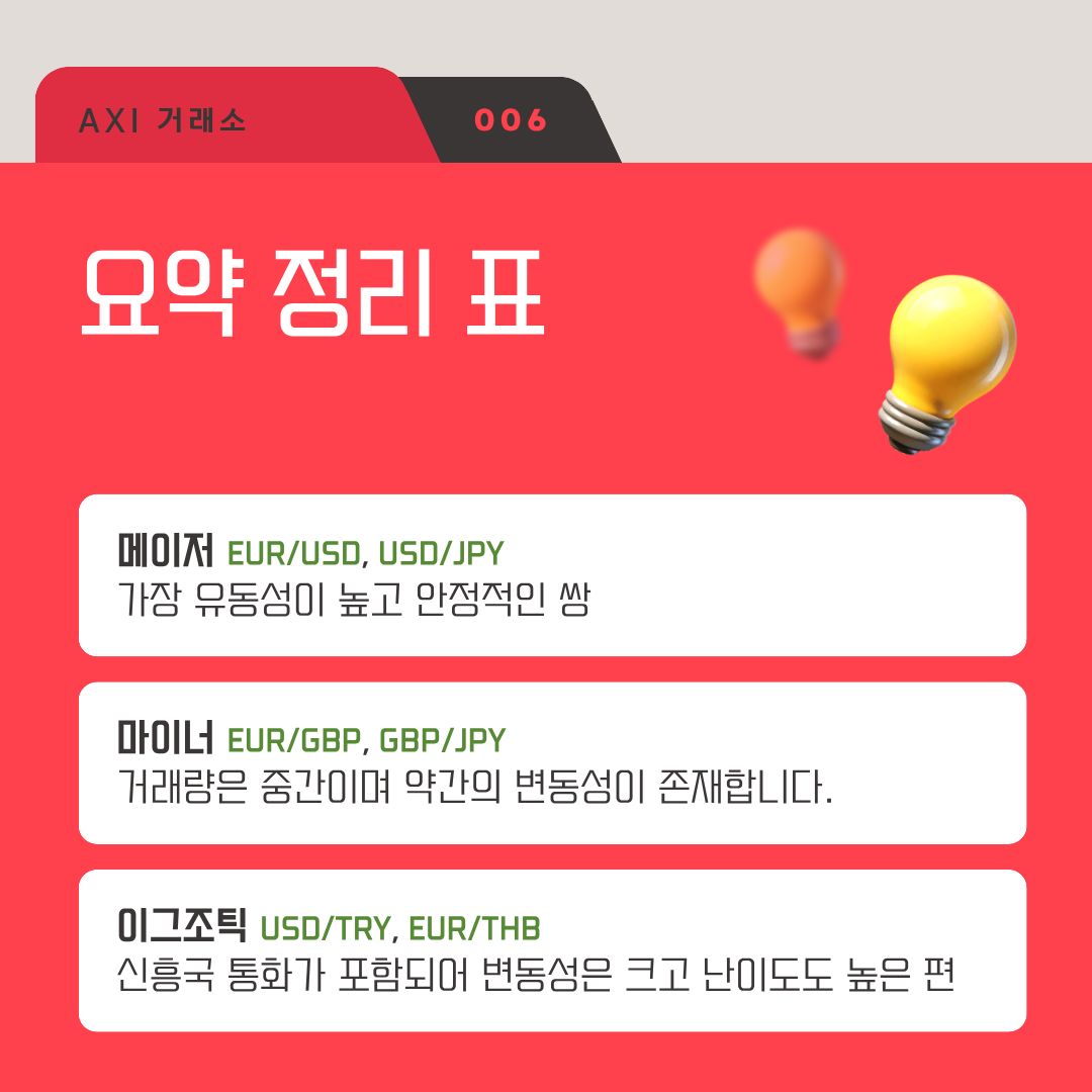 이제 통화쌍의 주요 분류와 그 특징에 대해 이해하셨다면,