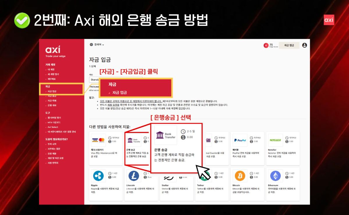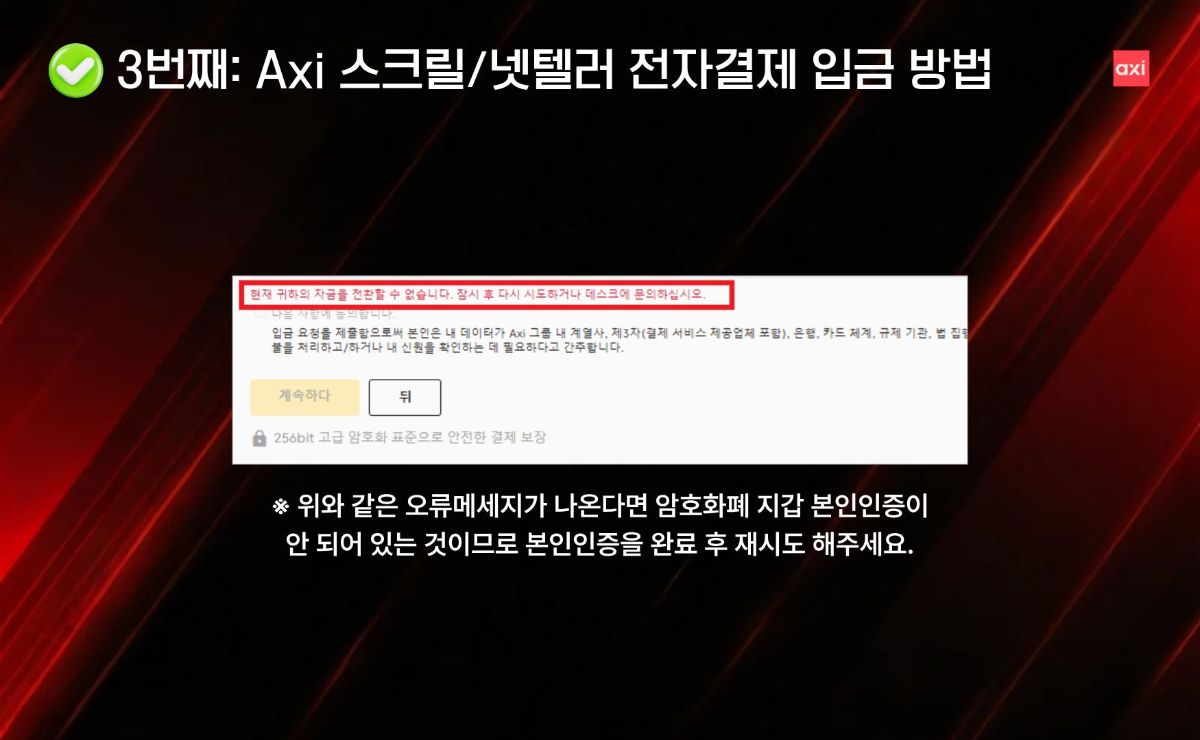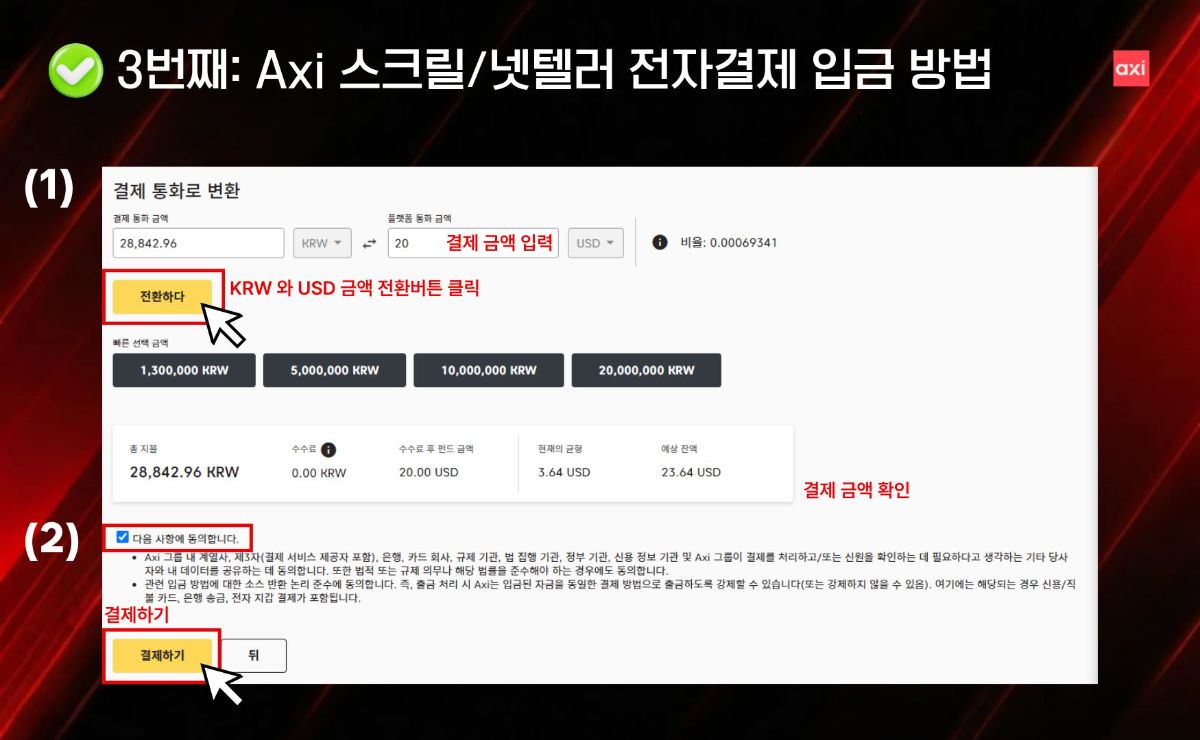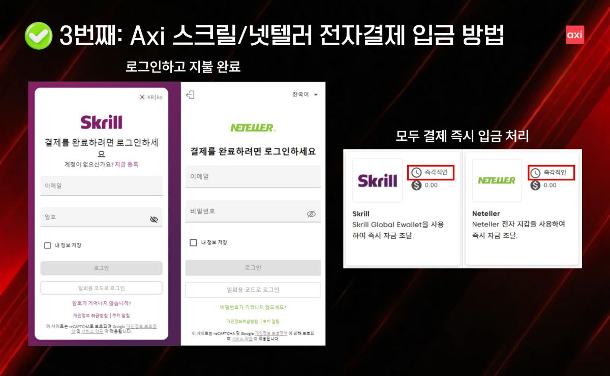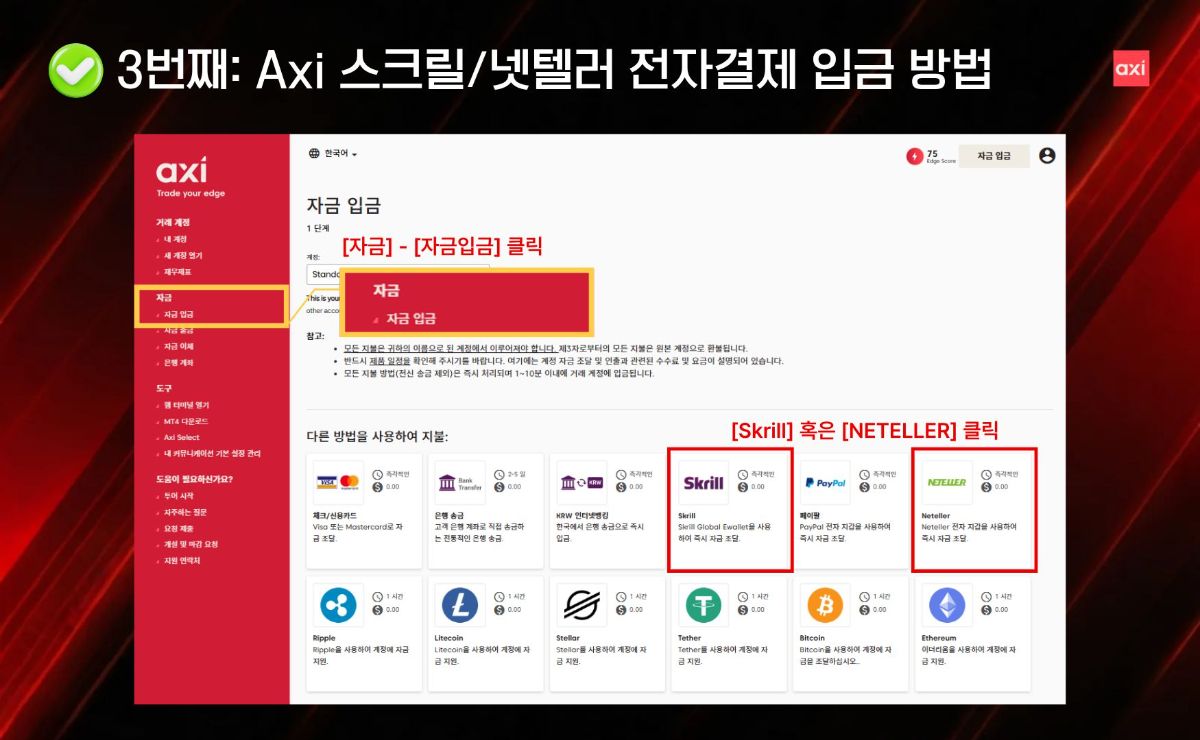 3. Axi 스크릴/넷텔러 전자결제 입금 방법