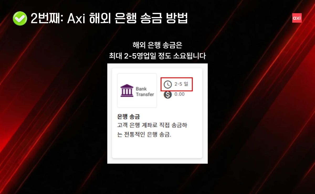 해외 은행 송금은 최대 영업 5일이 소요될 수 있습니다.