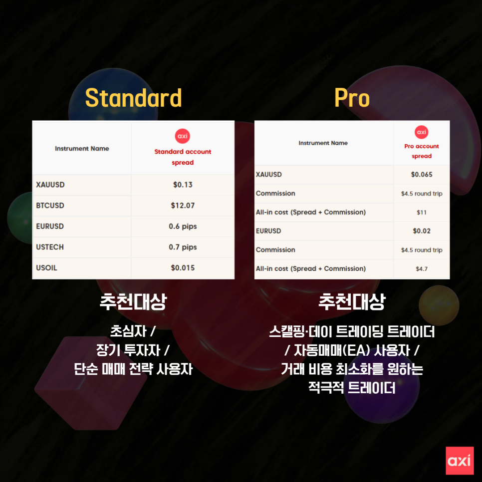 AXI 스탠다드(Standard)와 프로(Pro) 계정 비교